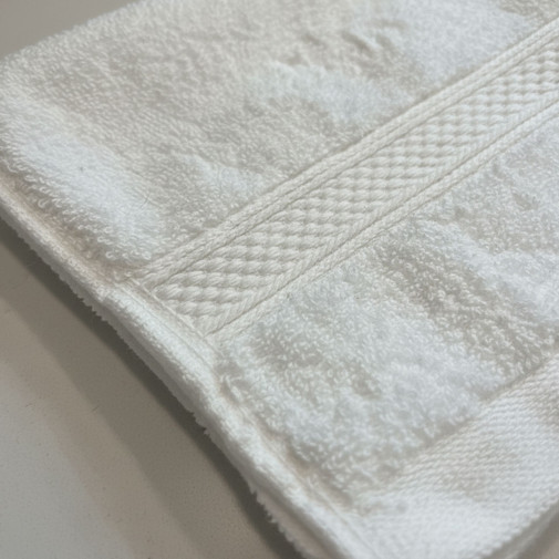 Crafted from premium 86% cotton and 14% polyester, it offers a plush feel and quick-drying performance, making it ideal for daily hotel use. The elegant dobby border and bright white finish add a touch of sophistication to any washroom décor, while its strong, hotel-grade construction ensures long-lasting quality even after repeated washes.